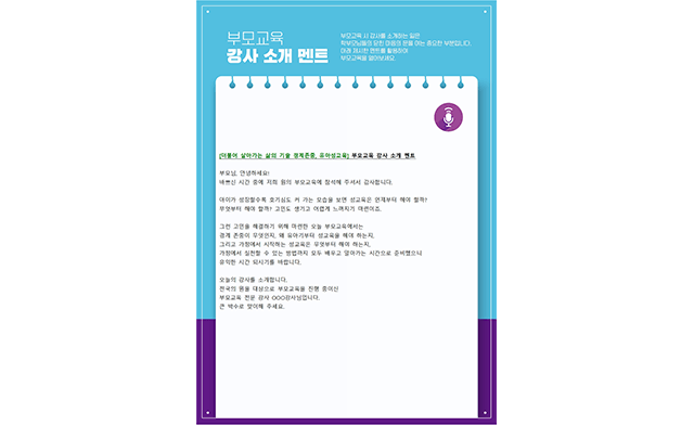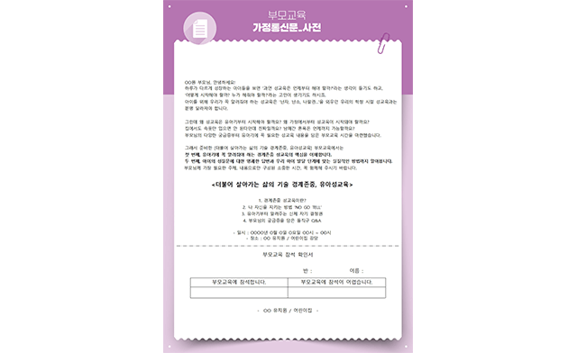 000엄마“예상치 못한 질문을 할 때 당황하고 얼버무릴 때가 있었는데 이제 제가 어떻게 해야 할지 알 것 같아요. 성교육에 대해 막연했던 부모에게 길잡이 같은 길을 만들어 주셔서 감사합니다. 앞으로 아이들이 성에 관련된 질문을 했을 때 보다 수월하게 알려줄 수 있을 것 같습니다. Q&A시간에 궁금했던 것들이 다 나와서 좋았습니다^^”