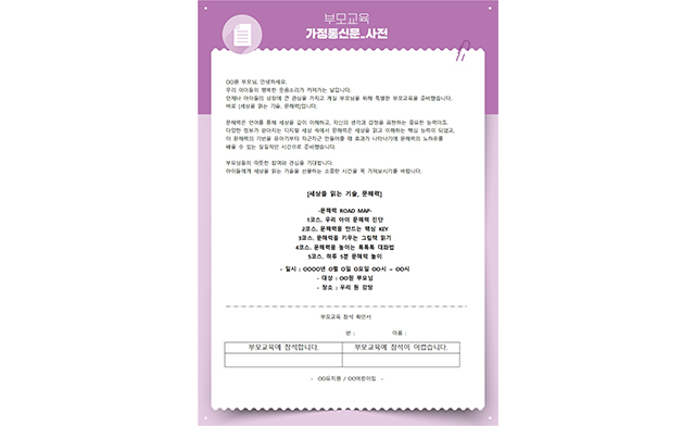 OOO엄마“아이의 문해력 발달이 어느 정도 성장하고 있는지 파악할 수 있게 되어 좋았습니다. 아이와 집에서 간단히 해볼 수 있는 놀이 방법과 상호작용까지 알려주셔서 보다 쉽고 재미있게 문해력을 높이는 방법을 터득한 것 같네요. 우리가 살아가는 데 있어서 문해력이 정말 중요하다는 것을 다시 한번 깨닫게 해주는 알차고 유익한 시간이었습니다.”