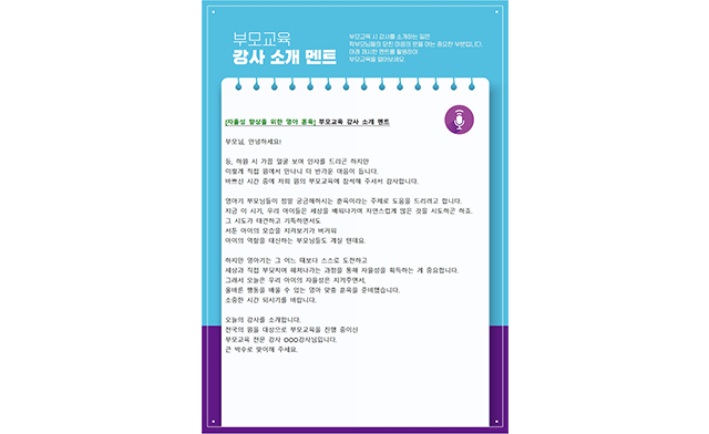 1. 오프닝: 원장님의 오프닝 인사 및 강사 소개