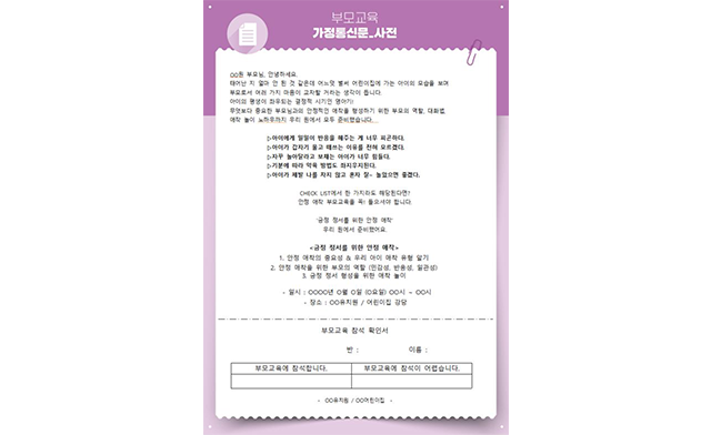 000엄마“바쁘다. 힘들다.”는 핑계로 아이와의 애착형성을 놓치고 있었네요. 그러면서도 내가 놓치고 있는 부분을 원장님과 담임선생님께서 잘 챙겨주고 계셨구나라는 감사와 안도감을 느꼈습니다. 원에서 원장님과 선생님께서 엄마가 되어주시고, 아이들과의 놀이와 애착형성에 애써주셔서 너무 감사드립니다. 저도 가정에서 노력하겠습니다.”