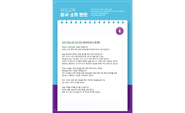 1. 오프닝: 원장님의 오프닝 인사 및 강사 소개