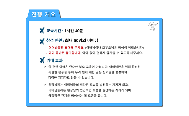 재원 엄마들을 우리 원의 든든한 조력자로 만들 수 있습니다.