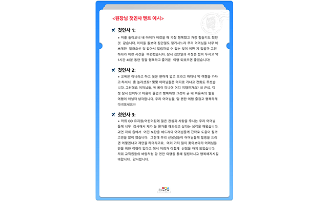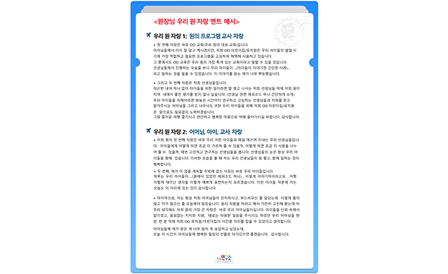 우리 원의 장점과 교직원을 당당하게 원장님이 직접 홍보할 수 있는 기회입니다.
