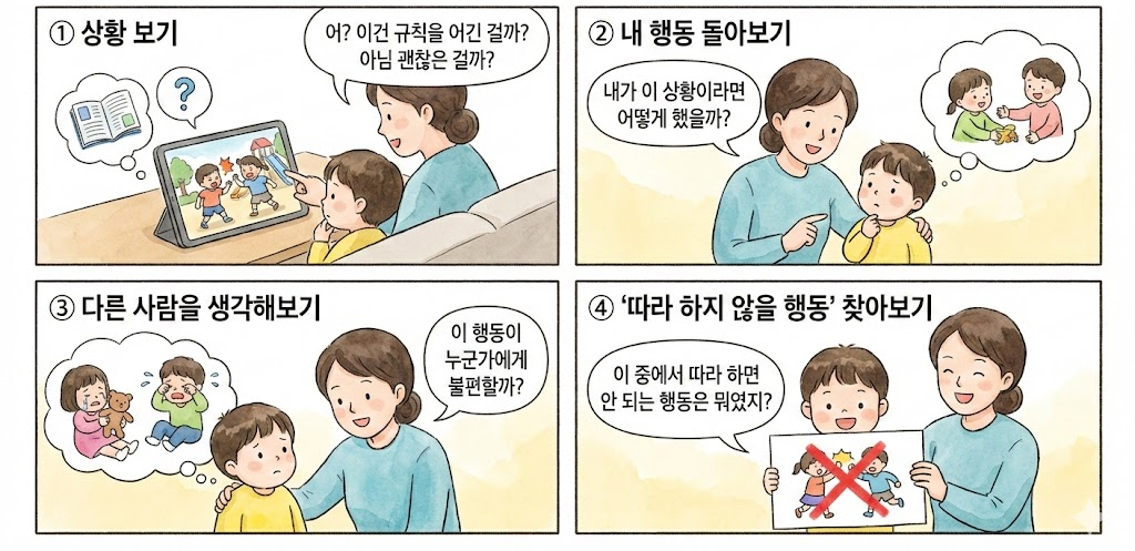 놀이처럼 가볍게 이야기하지만, 아이 안에서는 ‘양심의 기준’이 차곡차곡 쌓여요.